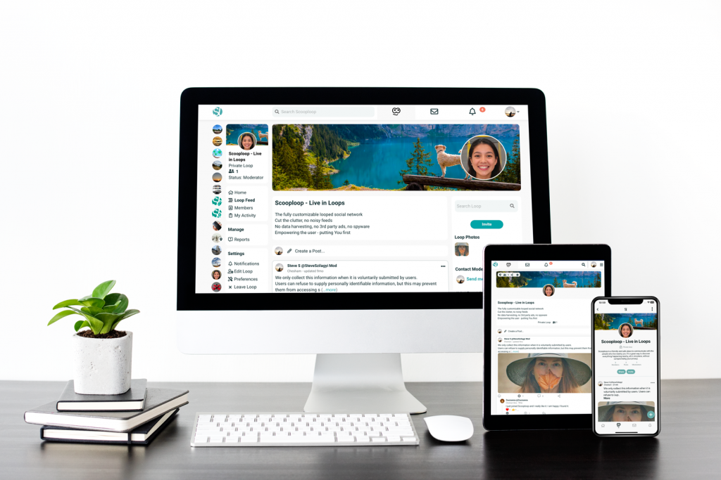 Scooploop is a social network that gives control back to the user and lets them decide how they want to use it. All interactions are in customisable loops. Whether you’re joining a fun chat loop, a local community, or setting up your own community, you decide what you see.